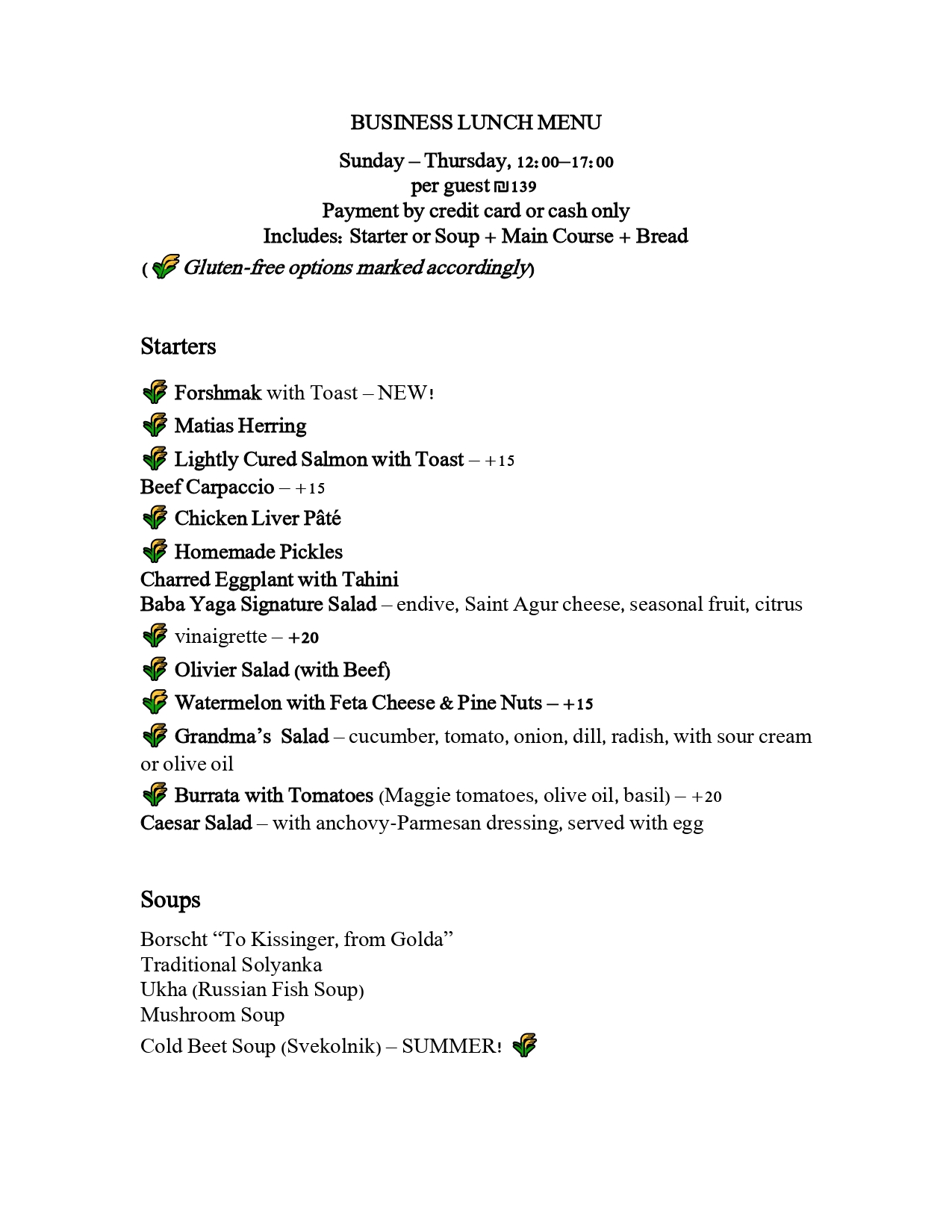 Event Menu THE MENU OF THE BABA YAGA RESTAURANT, SKILLFULLY CRAFTED BY THE EXPERIENCED СHEF, HAS BEEN INSPIRED BY MEDITERRANEAN לעוד מידע »