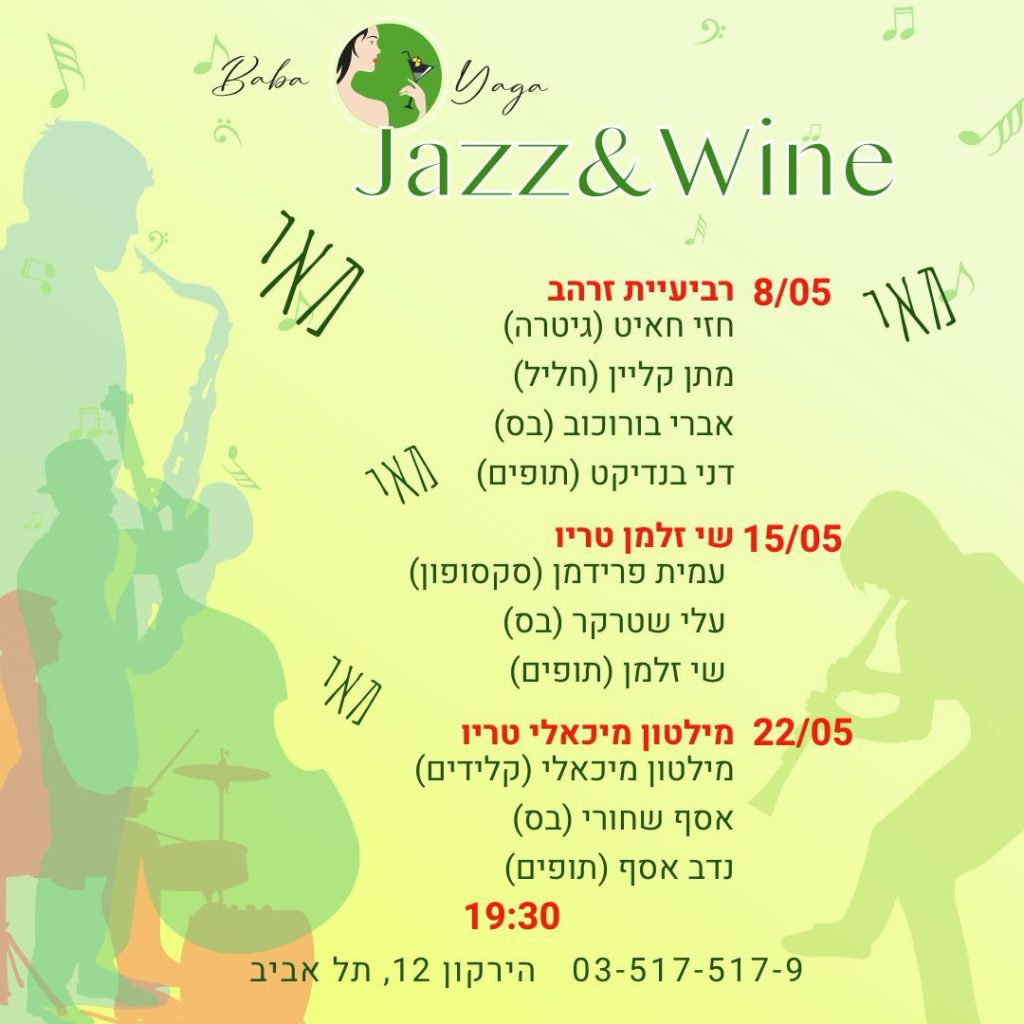 התחלה: 19:30 06.03.2025 סיום:22:30 27.03.2025 מיקום:מסעדת באבא יאגה רחוב הירקון 12- תל אביב 6/03 Квартет Юваля Драбкина (саксофон). Солист Офер Ландсберг (гитара). 8/03 Французский шансон Арнон Фридман 13/03 Квартет Sandia 20/03 Квартет ZurHub Матан Кляйн (флейта) и Хези Хаят (гитара) 27/03 Трио Шая Зельмана (ударные) Тель-Авив, Ха-Яркон, 12 03-517-517-9 *Чрезмерное употребление алкоголя может навредить вашему […]